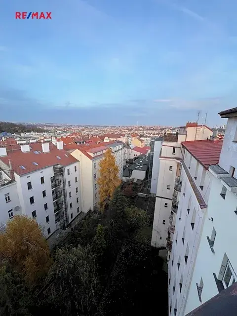 Hlavním lákadlem bytu je však prostorná střešní terasa o velikosti 18m2, která je umístěna do vnitrobloku a nabízí výjimečný a nerušený výhled na celou Prahu. Výhledově bude společenství vlastníků jednat o instalaci výtahu.