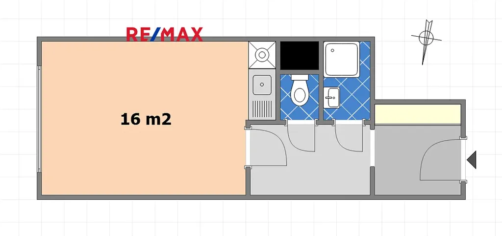 Samostatná toaleta a oddělená koupelna – komfort, který u 1kk nebývá standardem.