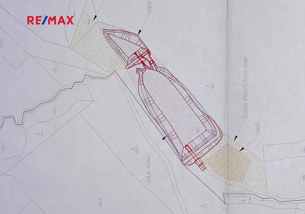 Stavba rybníka povolena. Prodej velkého pozemku: 8.264 m2 pro vybudování dvou rybníků s platným stavebním povolením - velkého (cca 2.500 m2) a menšího (cca 500 m2) pstruhového. Ještě zbyde prostor pro louky např. pro stanování. Nyní louka - přístup je po obecní komunikaci! ČEZ nedaleko.