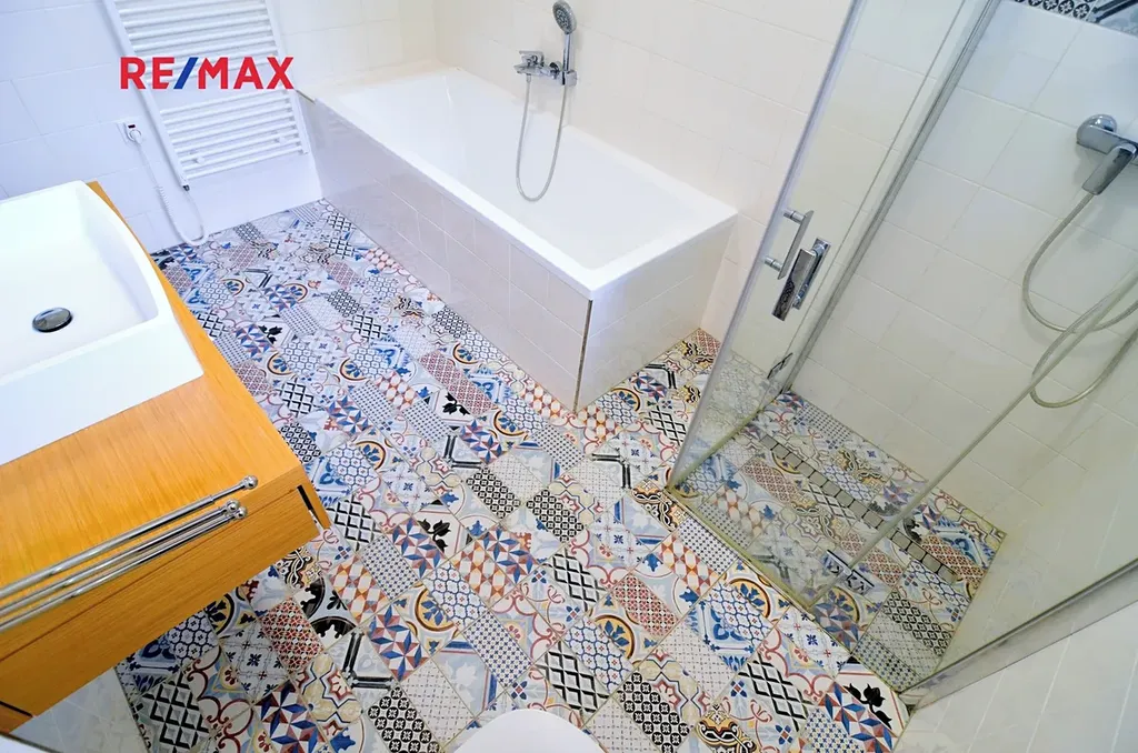 Byt se skládá ze světlého obývacího pokoje (38,4 m2) s kuchyňským koutem s mnoha okny na dvě světové strany a s výstupem na balkón o velikosti 11,5 m2. Dále z opravdu prostorné ložnice o velikosti 25,8 m2, s výstupem na druhý balkón o velikosti 5 m2. Tento pokoj lze v případě potřeby snadno přestavět vybudováním jedné příčky a přidáním dveří a vzniknou tak např. dva dětské pokoje (viz přiložené půdorysy bytu) Dále je v bytě další pokoj (17,1 m2). Ložnice jsou orientované na východ, směrem do zeleného zalesněného svahu, což poskytuje v této části bytu klid na spaní a v létě příjemný chládek. Prostorná světlá koupelna (8,1 m2) s přímým denním osvětlením je vybavena vanou, umyvadlem s koupelnovou skříňkou, WC ale také sprchovým koutem. V technické místnosti (6,4 m2) je další WC s umyvadlem a bidetovou sprškou a také elektrický bojler, pračka a sušička. Z prostorné vstupní haly je vstup do všech místností v bytě. Je zde i možnost připojení krbu nebo krbových kamen. Samotný vstup do bytu je jištěn bezpečnostními dveřmi. Na podlahách je kvalitní dřevěná podlaha z masivu a velkoformátová dlažba, v koupelně pak působivá dlažba v patchwork designu. Dveře v bytě jsou dřevěné, částečně prosklené v obložkových zárubních. Okna jsou bílá, plastová.