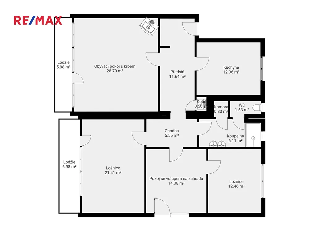Přímý vstup na udržovanou zahradu (365 m²) s altánem