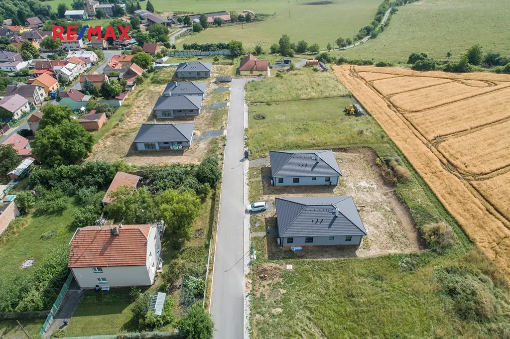 Hledáte svůj nový domov? Máme pro Vás novostavbu bungalovu se skvělou dostupností Prahy! Nabízíme ekonomicky úspornou stavbu jednopodlažního domu v rámci developerského projektu (4 zděné domy a 2 levnější dřevostavby s menším pozemkem) s užitnou plochou 121 m2 na pozemku o ploše 1036 m2, navrženou tak, aby splňovala současné nároky na moderní domov. Tak je koncipován i interiér bugalovu s dipozicí 4+kk. Za vchodem do budovy se nachází technická místnost, dále jsou umístěny 3 ložnice, 2 z nich mají vlastní šatnu, z chodby je dále vstup do koupelny s WC a do dalšího, samostatného WC. V čele chodby vstoupíme do prostorného, světlého obývacího pokoje s přípravou na kuchyňský kout. Zde jsou francouzská okna do zahrady.