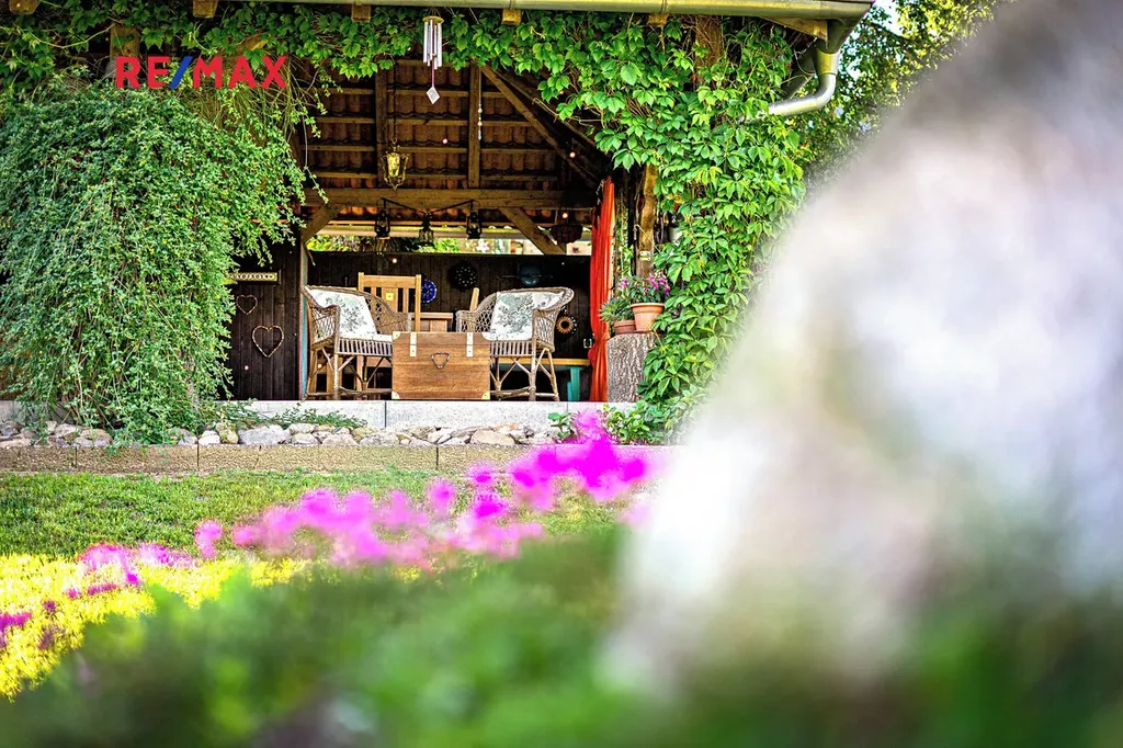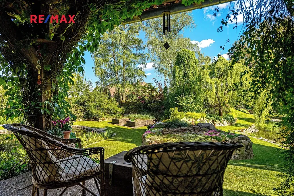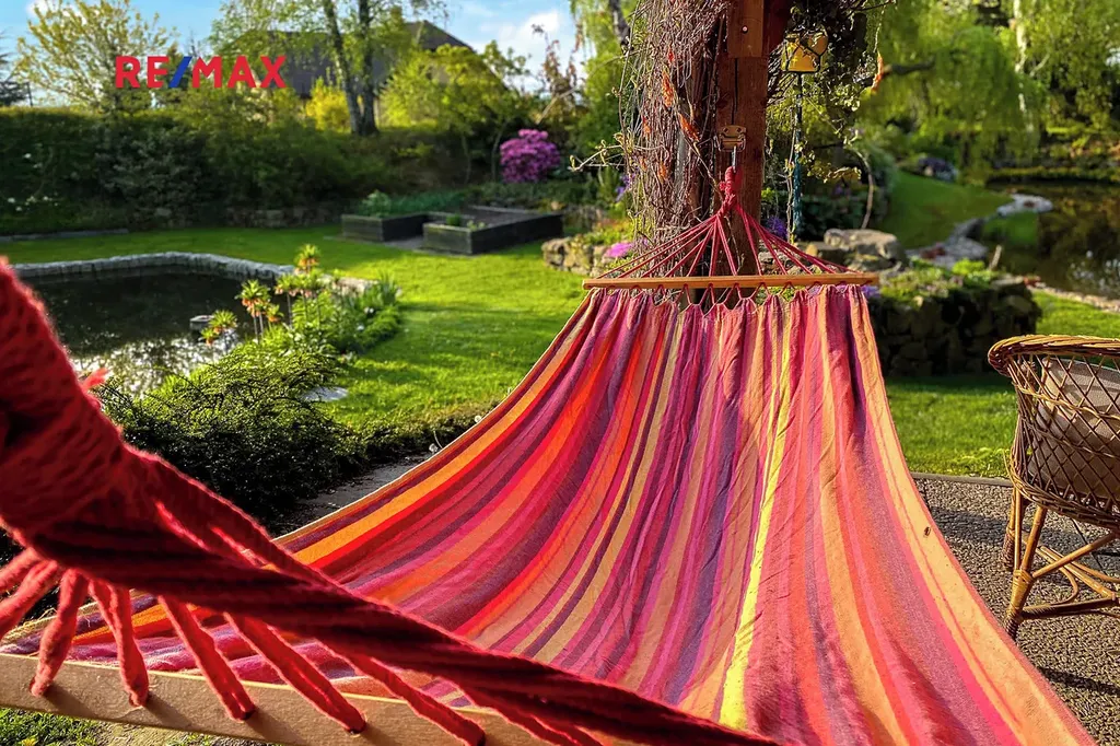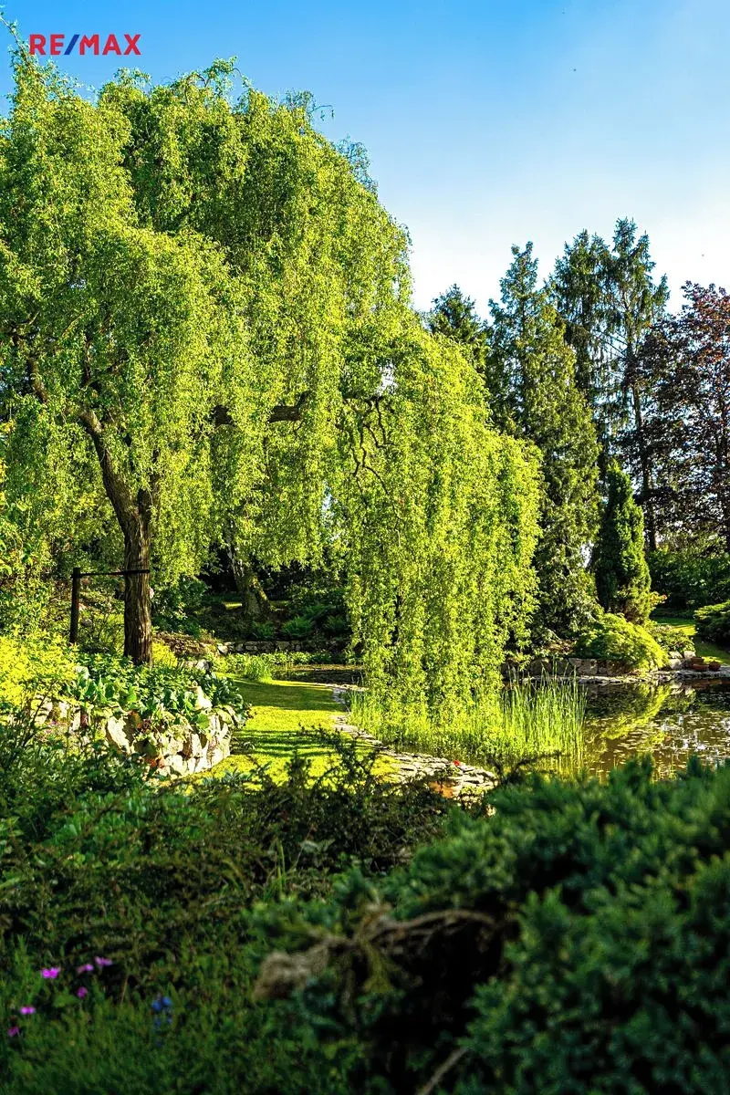 Samotná dechberoucí okrasná zahrada se vzrostlými stromy a dvěma jezírky, poskytuje maximální soukromí a vybízí k odpočinku či k setkávání s rodinou a přáteli. Najdete zde i užitnou část pro pěstování vlastní zeleniny. A jste-li milovníky přírody, jistě vás potěší množství živočichů, kteří zde našli své útočiště. V jarních a letních měsících se můžete zaposlouchat do ptačího zpěvu či milostného kuňkání žab. Pro údržbu zahrady vám ráda doporučím zahradníka.