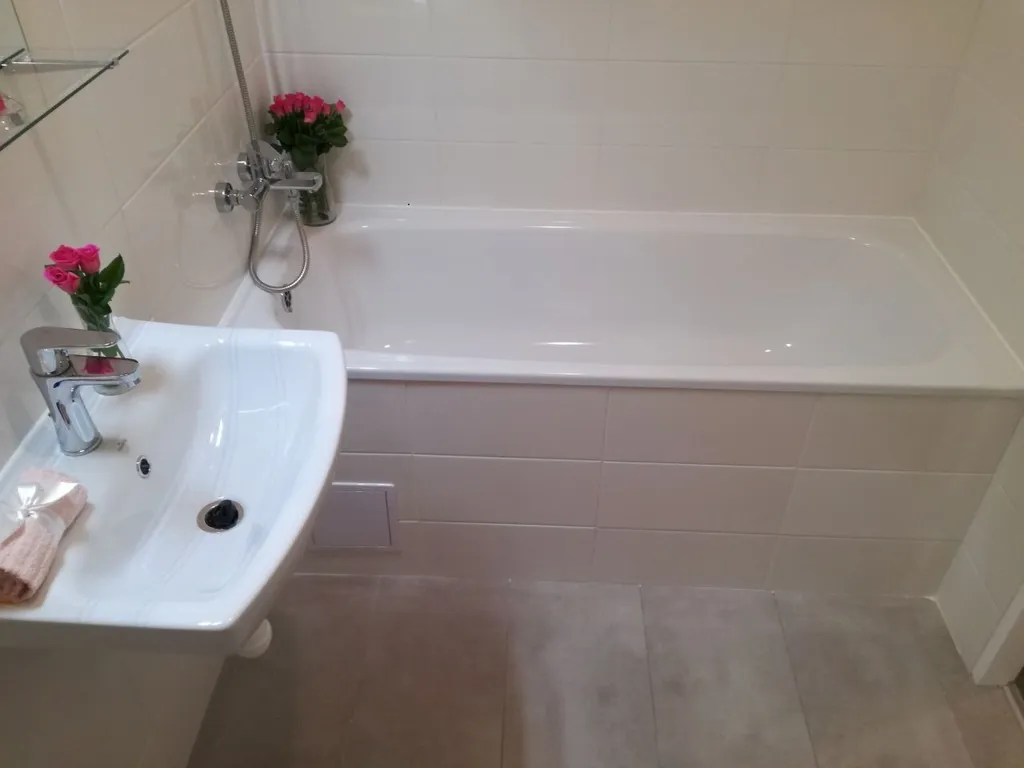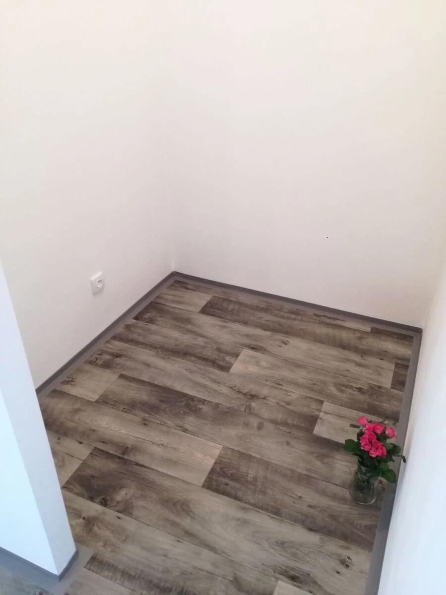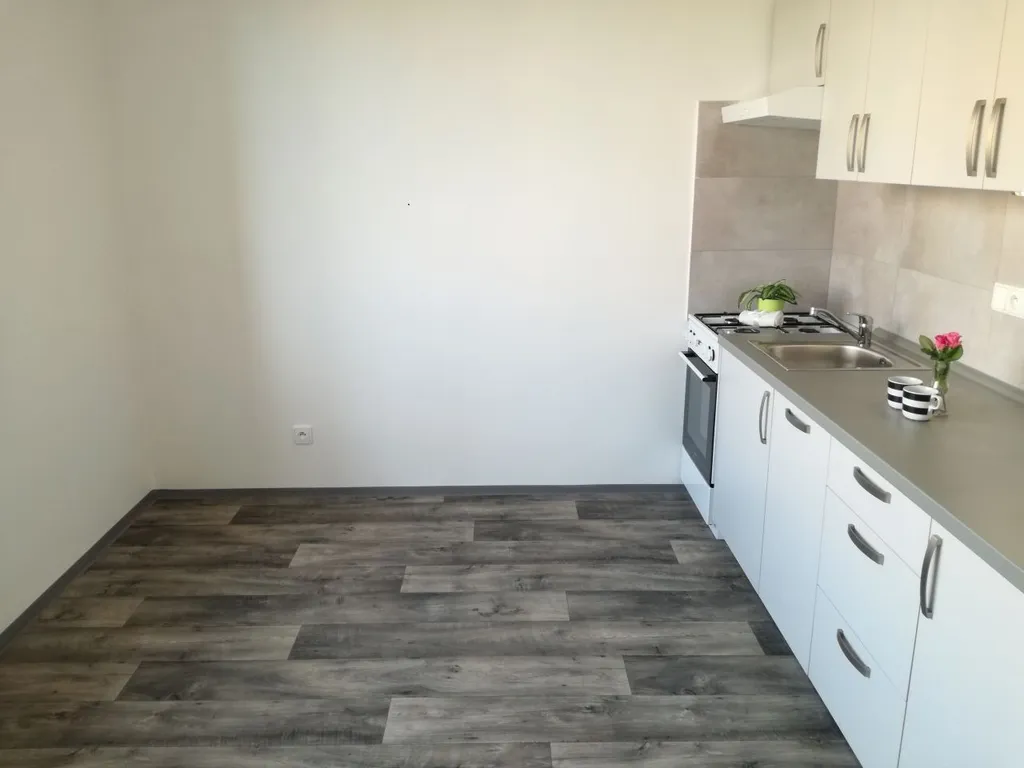 Byt má vyzděné jádro, podlahy, rozvody, omítky, interiérové dveře. Koupelna s vanou a umyvadlem s možností připojení pračky, toaleta je odděleně. Prostorná kuchyňská linka je opatřena plynovým sporákem a elektrickou troubou.