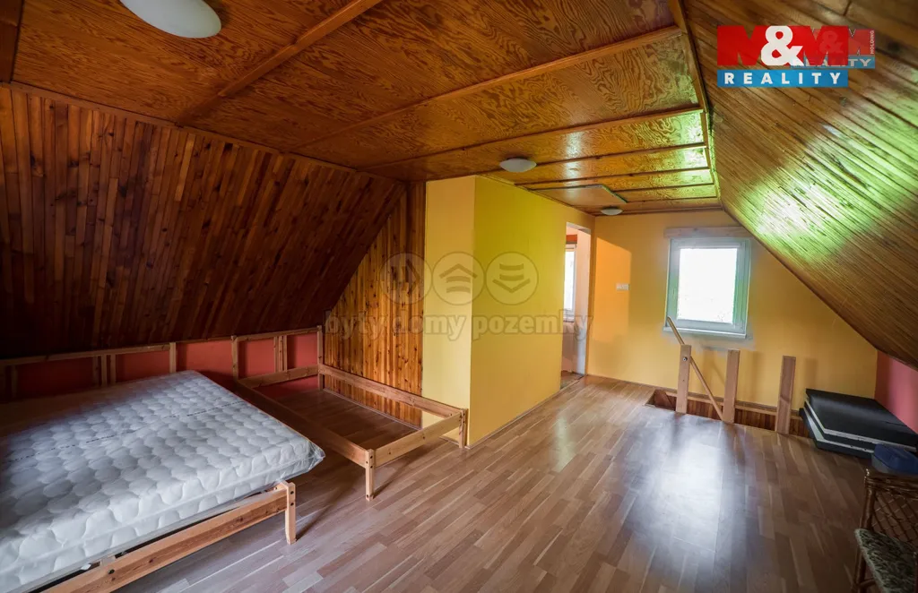 Nabízíme k prodeji chatu zhruba 15 minut od Brna v lese vedle obce Nebovidy. Chata se nachází v chatové oblasti a stojí na pozemku ve vlastnictví Lesů České republiky. Skládá se z tří podlaží - jedno je technické a může sloužit jako garáž, prostřední je obytné s kuchyní, obývacím pokojem a koupelnou s WC, horní patro je potom složeno z jednoho velkého samostatného pokoje a otevřeného prostoru na spaní s přístupem na balkon. V chatě je zavedena elektřina, odpad je řešen septikem a vodu je nutné dovážet vlastní do nádrží v garáži. Vytápění je řešeno krbovými kamny v obývacím pokoji, je případně možné umístit přímotopy. Příjezd na chatu je po lesní cestě. Více informací v RK.