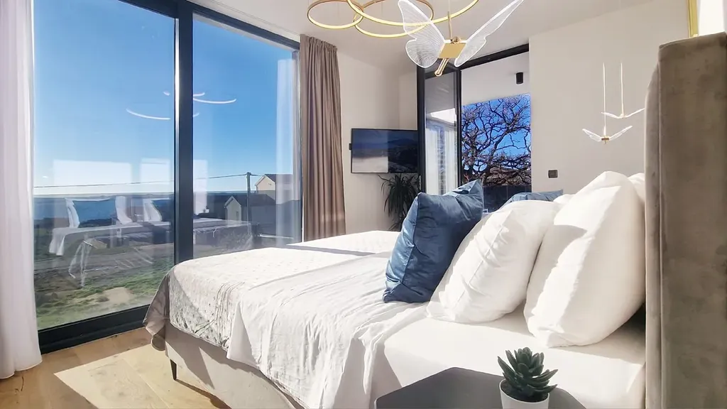 Vila se nachází ve výstavbě a sestává z přízemí a 1. patra. V přízemí je kuchyň s jídelnou a obývacím pokojem, koupelna, spíž, pokoj se saunou a terasa s prostorem k posezení a opalování. Po moderním ocelovém schodišti se dostanete do 1. patra, kde jsou 3 velké ložnice s vlastními koupelnami a vstupy na prostornou terasu. Největší pokoj má i vlastní šatnu.