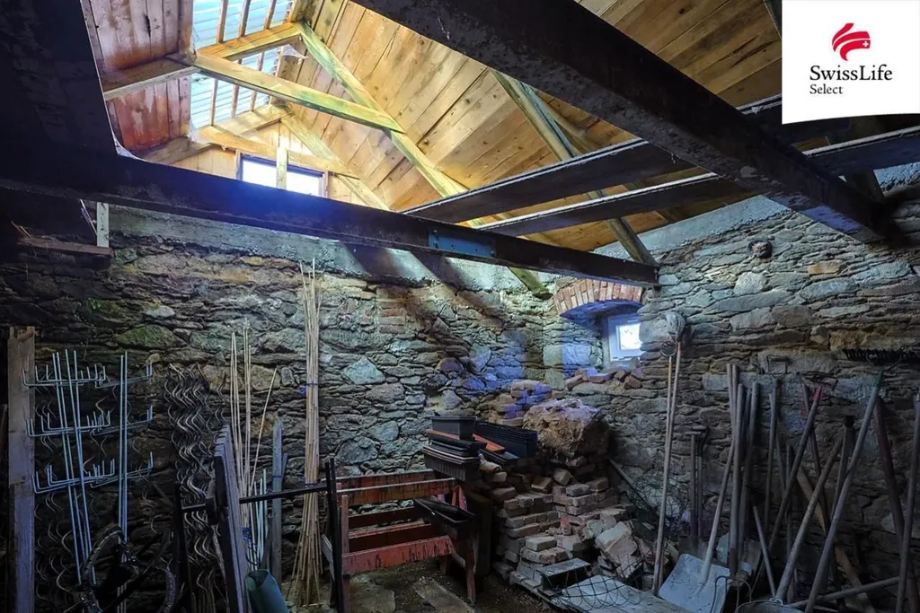 Vedlejší budova bývalého chlíva z precizně skládaného kamenného zdiva je jako stvořená například pro umělecký ateliér. Krom toho nabízí i velké zázemí pro dílnu, uskladnění zahradního náčiní, výpěstků, dřeva, popřípadě zde nějaký čtyřnohý spolubydlící najde svůj prostor. Zahrada je mírně svažitá, orientovaná na jih - slunce je tu dostatek. Pozemek je výborně udržovaný, najdete zde s láskou opečovávané květiny, keře i ovocné stromy. Vymazlená terasa a posezení s venkovním grilem s udírnou navazují na obývací pokoj s kuchyní.