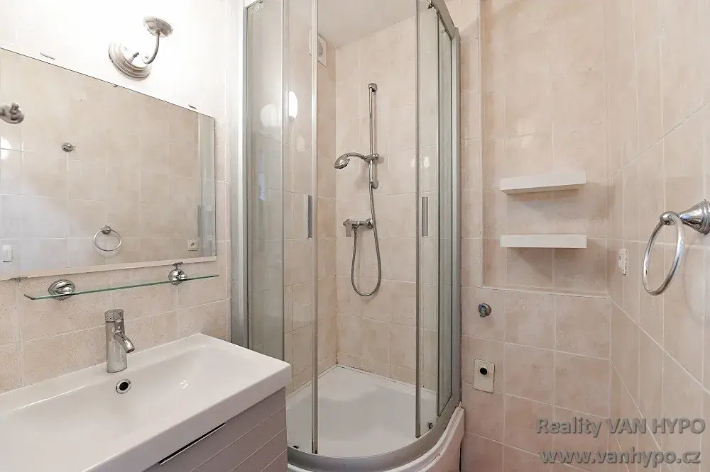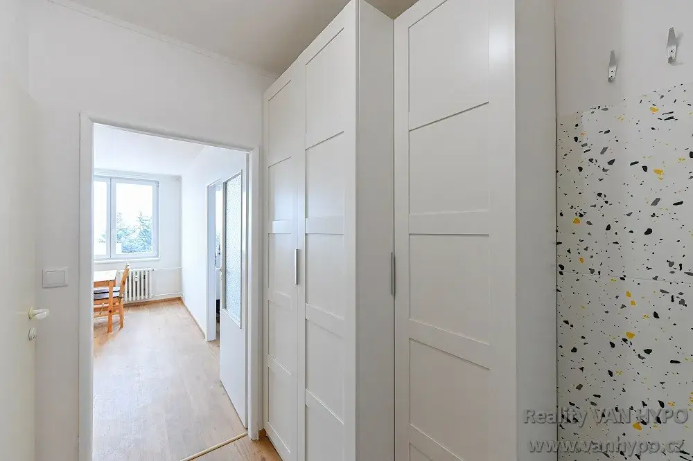 Byt má k dispozici vstupní chodbu se šatní skříní a botníkem, koupelnu se sprchovým koutem a místem pro pračku, samostatnou toaletu a dále prostornou kuchyň s jídelním koutem a 2 ložnice. K dispozici je i sklepní kóje ca. 2 m2. Byt prošel nedávno celkovou úspěšnou modernizací.