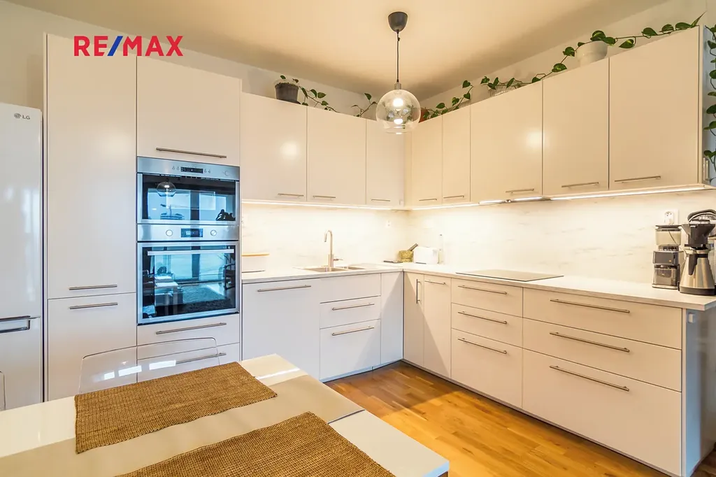 - moderní a nadčasová kuchyňská linka s vestavěnými spotřebiči