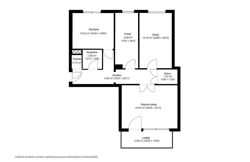 Nabízíme k pronájmu krásný byt 3+1 s klimatizací, šatnou a lodžií o výměře 68,29 m² v Plzni