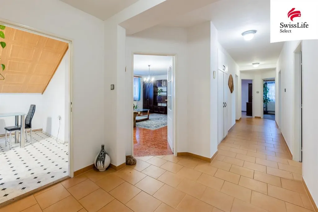 Byt disponuje velkým obývacím pokojem, samostatnou a prostornou kuchyní s jídelním koutem. Další čtyři pokoje nabízejí variabilitu využití ložnice, dětské pokoje, pracovna, šatna či pokoj pro hosty.