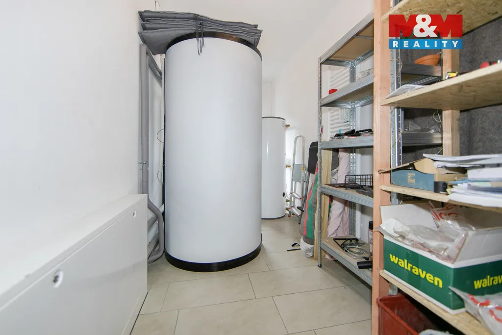 Dům má vlastní kopanou studnu i napojení na veřejný vodovod a kanalizaci. O vytápění se stará plynový kotel, krb s rozvodem tepla a podlahové topení.