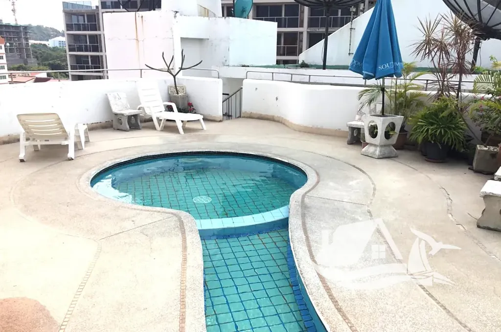 Na střeše budovy je k dispozici bazén s výhledem. Téměř všechny apartmány v tomto osmipodlažním komplexu nabízí krásný výhled na moře a ostrov Koh Larn.