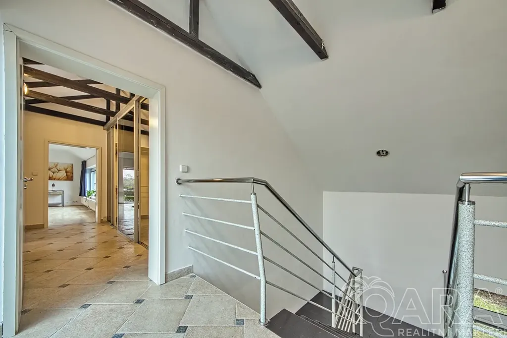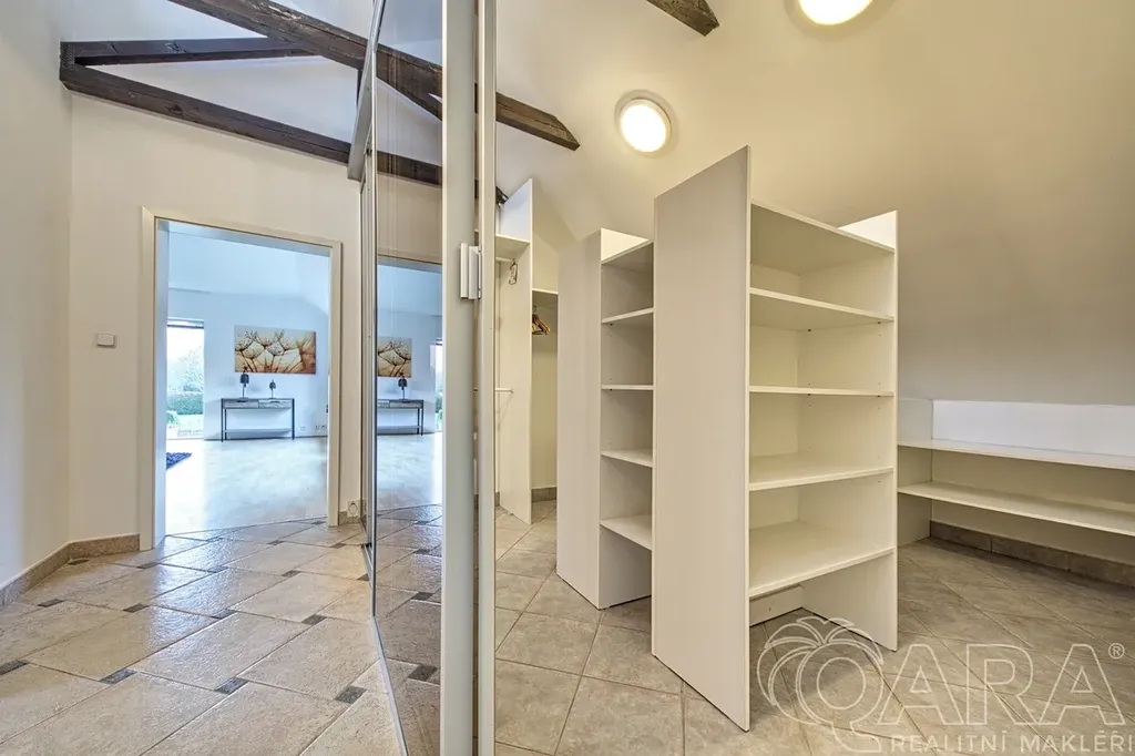 Zázemí: dvojgaráž + další parkování na pozemku, mnoho vestavěných šaten a úložných prostor.