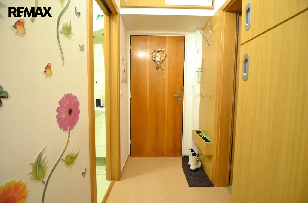 Byt se nachází ve 4. nadzemním podlaží revitalizovaného domu s výtahem. Celková plocha činí přibližně 32 m² a dispozice 1+1 nabízí samostatný pokoj, oddělenou kuchyni, koupelnu s WC a předsíň. Součástí bytu je také menší balkon a sklepní kóje, která poskytuje další úložný prostor.