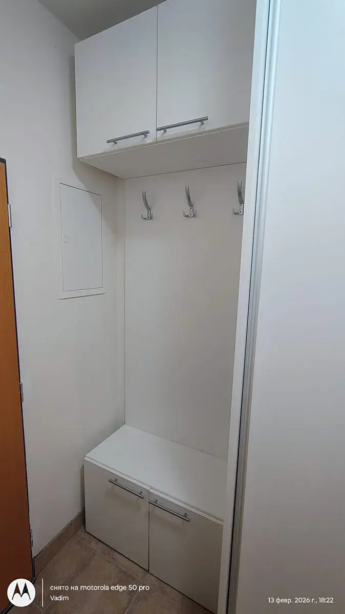 Kuchyňská linka je vybavena spotřebiči (varná deska, trouba, digestoř, lednice). V bytě je dostatek úložného prostoru díky vestavěné skříni.