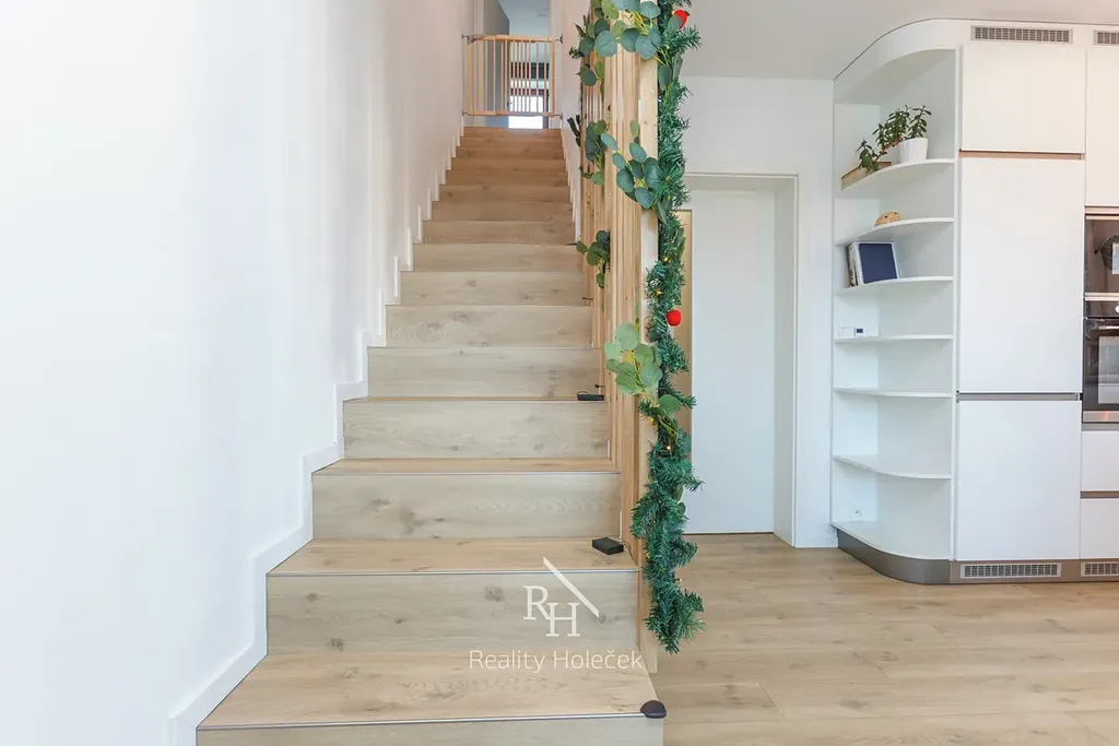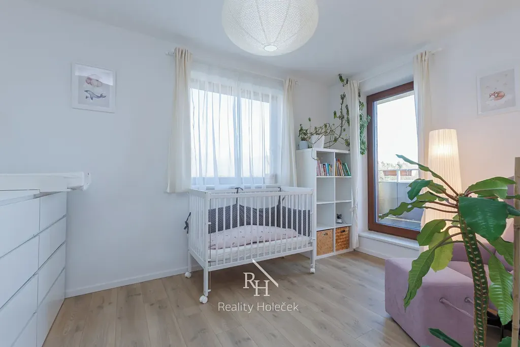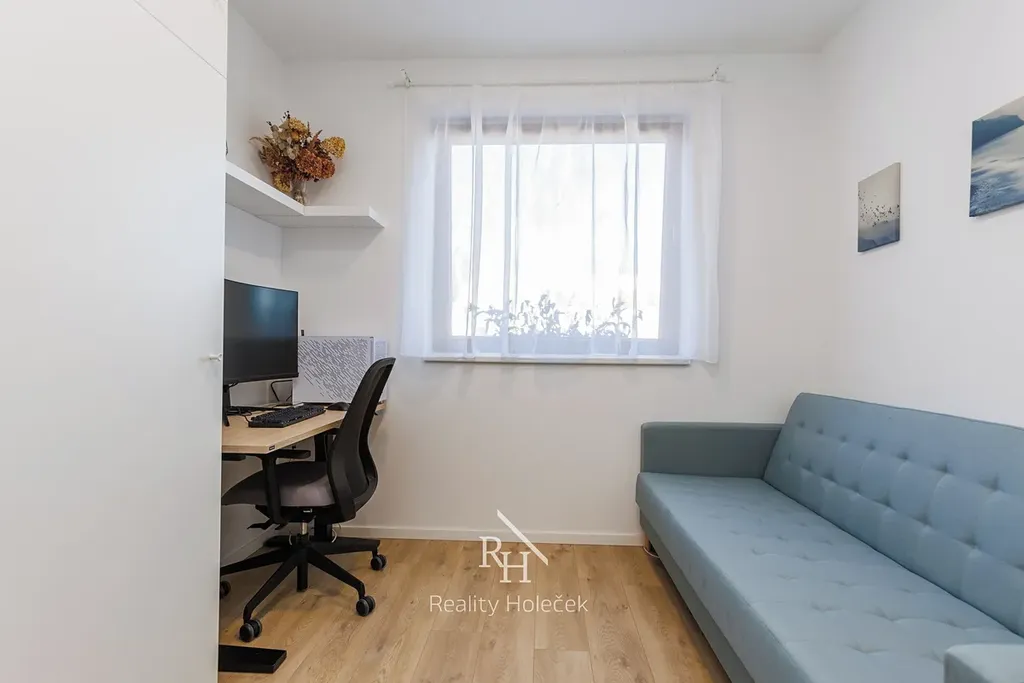 Přízemí je připravené pro společný rodinný život – velký obývák s kuchyní je srdcem bytu a přirozeným centrem rodiny. Pracujete na home office? Pak Vám přijde vhod pracovna, která může posloužit i jako pokoj pro hosty. V patře pak najdete soukromé pokoje, druhou koupelnu a šatnu, kterou jistě ocení Vaše drahá polovička.
