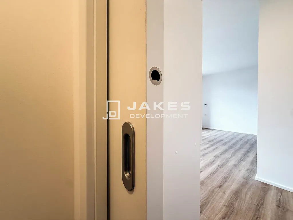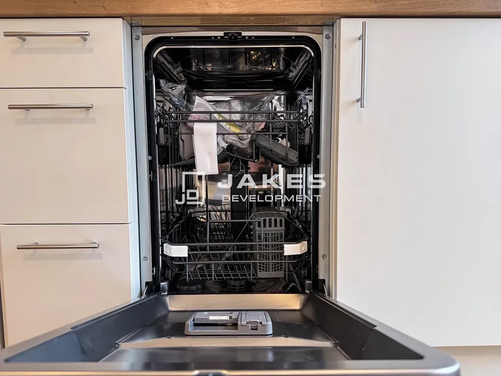 Vytápění je zajištěno radiátory ve všech obytných místnostech i koupelně. Byt bude dokončen s kvalitními vinylovými podlahami, elegantní koupelnou s keramickým obkladem a moderními interiérovými dveřmi. Byt disponuje kuchyňskou linkou s vestavěnými spotřebiči (varná deska, myčka nádobí, pračka, lednička s mrazákem), osvětlení a garnýže.
