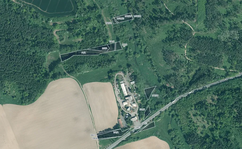 Pozemky jsou vedeny pod čísly 64/1, 100/9, 107/1, 160/12, 160/29, 160/30, 170/9, 182/7, 192/1, 194/6, 406/34, 406/40, 410, 505/6, 531/2, 545/3, 558/3, 559/15, 584, 714/10, 720/6, 809/1, 1002/31, 1060, 1061, 1143/10, 1149/3, 1151/13, 1156/28, 1158/24 a 1158/25.