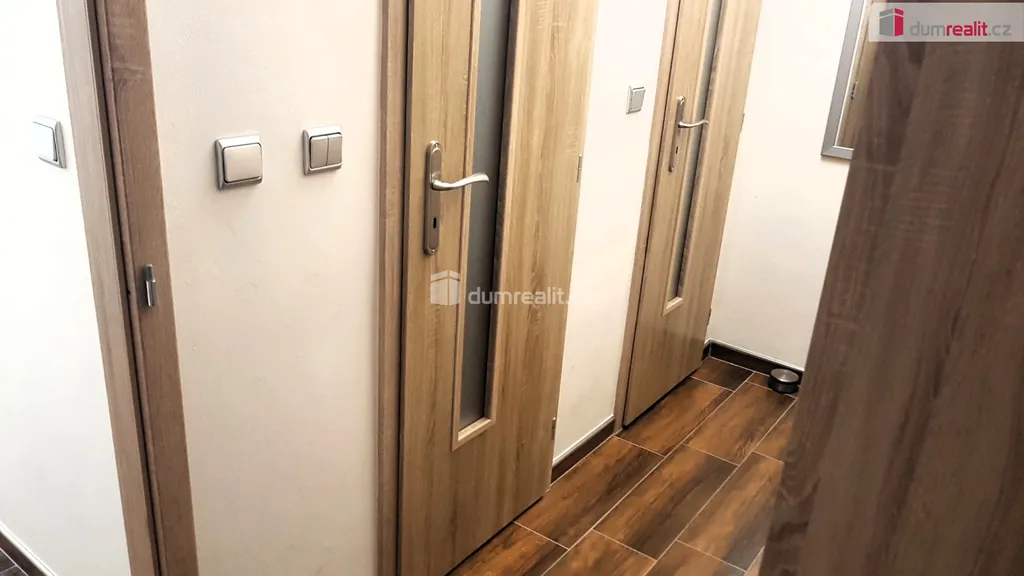 Po vstupu do bytu se ocitneme v předsíni. Směrem vpravo je zděná koupelna s umyvadlem a sprchovým koutem. Další místností je samostatná toaleta. Do obou místností se vstupuje z předsíně. Na stěnách je velkoformátový obklad, na podlaze keramická dlažba (koupelna, toaleta, předsíň a kuchyně). Je zde i prostorná vestavěná skříň až ke stropu s objemnými úložnými prostory.