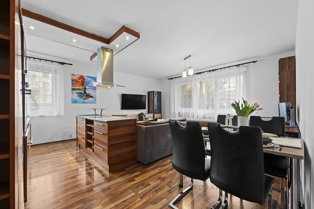 Udržovaný bytový dům z roku 2007 a s klasifikací PENB C, se nachází na adrese Hakenova 929/2. Bytová jednotka je situována v příjemném prostředí moderní zástavby, konkrétně v přízemí s okny do boční ulice a na dětské hřiště. Byt s podlahovou plochou 65 m2 disponuje předsíní s úložným prostorem/komorou, vstupem do koupelny, na toaletu, do dětského pokoje a obývací části. Z této části je přístupná i ložnice (6,4 m2). Obývací pokoj (30,7 m2)včetně kuchyňského koutu se samostatným moderním ostrůvkem nabízí dostatek místa pro sedací soupravu i jídelní stůl. Kuchyňský kout je vybavený varnou deskou, závěsnou digestoří, elektrickou horkovzdušnou troubou, myčkou, mikrovlnou troubou, lednicí a dostatkem úložného prostoru. Dětský pokoj (14 m2), kam se vejdou i 2 dětské postýlky nabízí příjemný výhled na dětské hřiště. Koupelna s vanou a pračkou je umístěna od toalety separátně. Okna jsou plastová dvojskla s roletkami, umístěna na jihozápadní světovou stranu. Vytápění bytu a ohřev vody je dálkově z teplárny. Byt je klasifikovaný jako 2+kk, ale rozdělený příčkou na 3+kk.