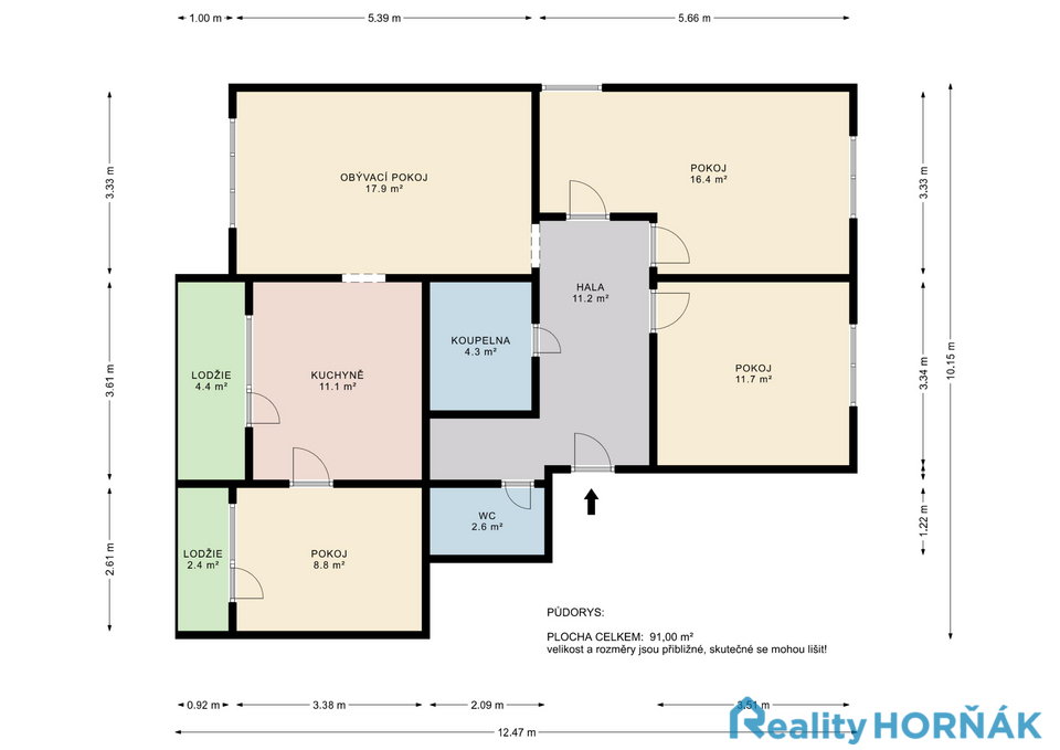 Dovoluji si Vám exkluzivně nabídnout byt v osobním vlastnictví o dispozici 4+1 se dvěma lodžiemi a vestavěnou garáží ve Stádlci na Táborsku. Nabízený byt je umístěn ve druhém patře dvoupatrového zděného bytového domu – původní vesnické bytovce ze sedmdesátých let minulého století. Dispozice nabízí jednotlivé místnosti: předsíň (10,55 m²), obývací pokoj (19,38 m²), kuchyni (10,20 m²), ložnici (12,24 m²) a dva dětské pokoje (12,24 m² a 8,04 m²). Dispozici dále doplňují šatna (4,56 m²), koupelna (4,00 m²) a WC (1,92 m²). Příslušenstvím bytu jsou dvě lodžie (1,92 m² a 4,29 m² u kuchyně a ložnice), garáž (17,68 m²), kotelna (3,07 m²) a dva sklepy (7,14 m² a 4,08 m²) ve výlučném užívání vlastníka jednotky. Podlahová plocha samotného bytu čítá 83,13 m2, celková plocha včetně příslušenství činí 115,10 m².