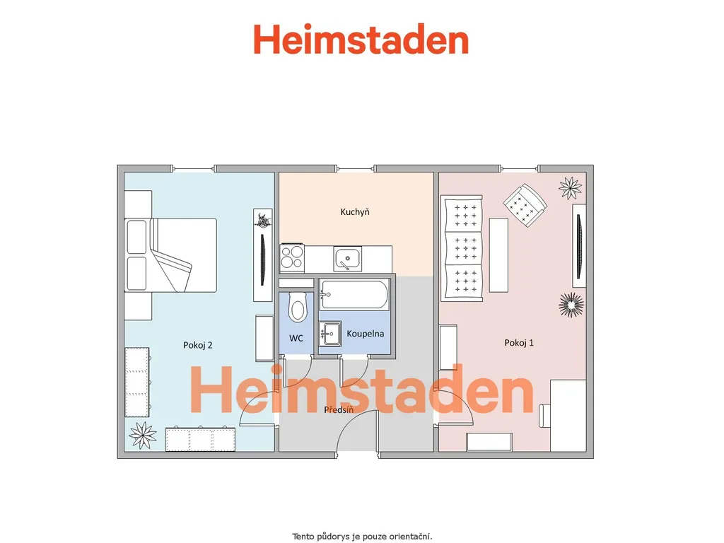 Byt o ploše cca 52 m² se skládá z prostorného obývacího pokoje, ložnice, kuchyně, chodby a koupelny. Kuchyně je vybavena moderní kuchyňskou linkou a kombinovaným sporákem. V koupelně je k dispozici vana. Připojení na pračku je umístěno v kuchyni. Byt je po rekonstrukci a nabízí dostatek světla díky orientaci oken.