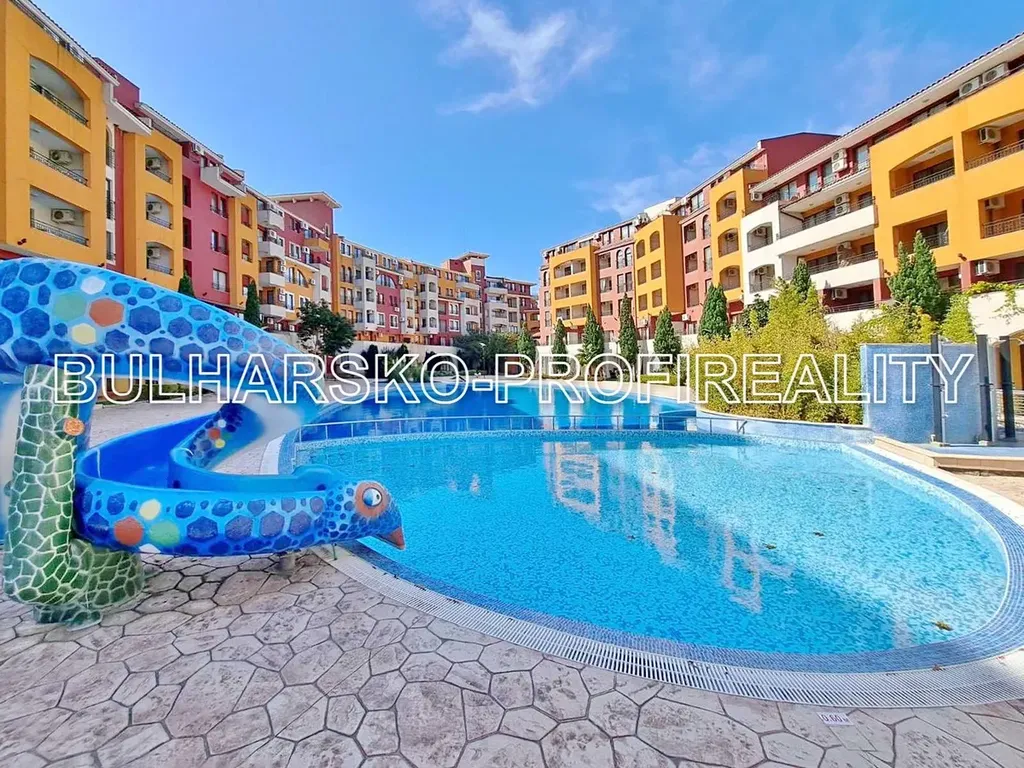 Rádi bychom vám představili k prodeji velice prostorný a kompletně zařízený dvoupokojový apartmán o dispozici 2+kk a nadstandardní celkové ploše 86 m. Tato nemovitost se nachází ve velice udržovaném rekreačním komplexu hotelového stylu, který leží přímo u moře v letovisku Aheloy (Bulharsko).