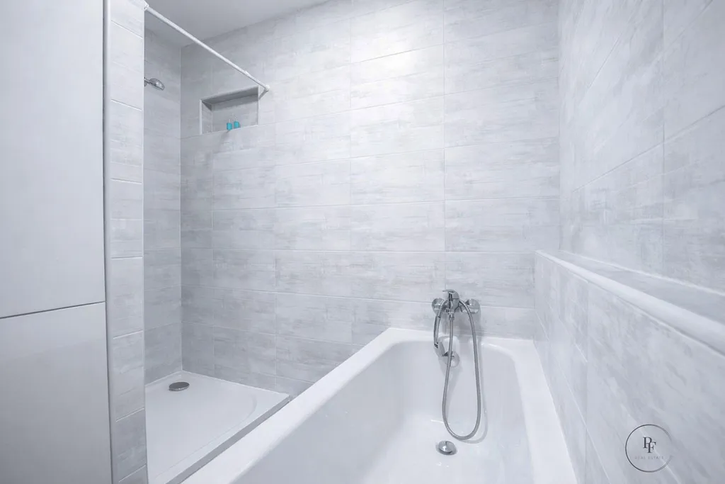 Koupelna je prakticky řešená a nabízí nadstandardní komfort, k dispozici je vana i sprchový kout.