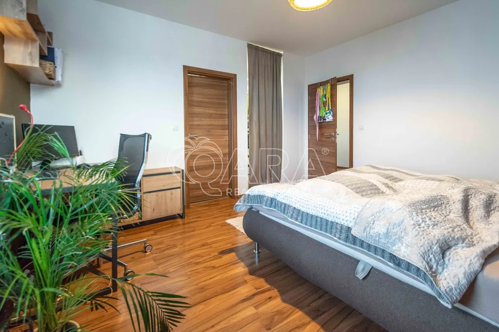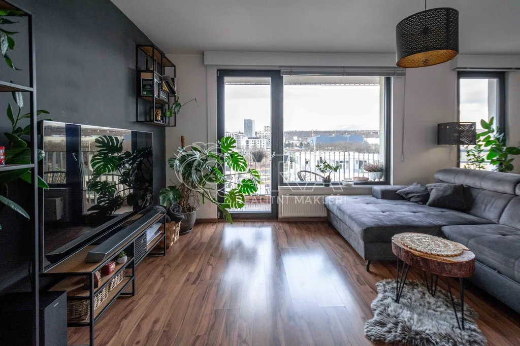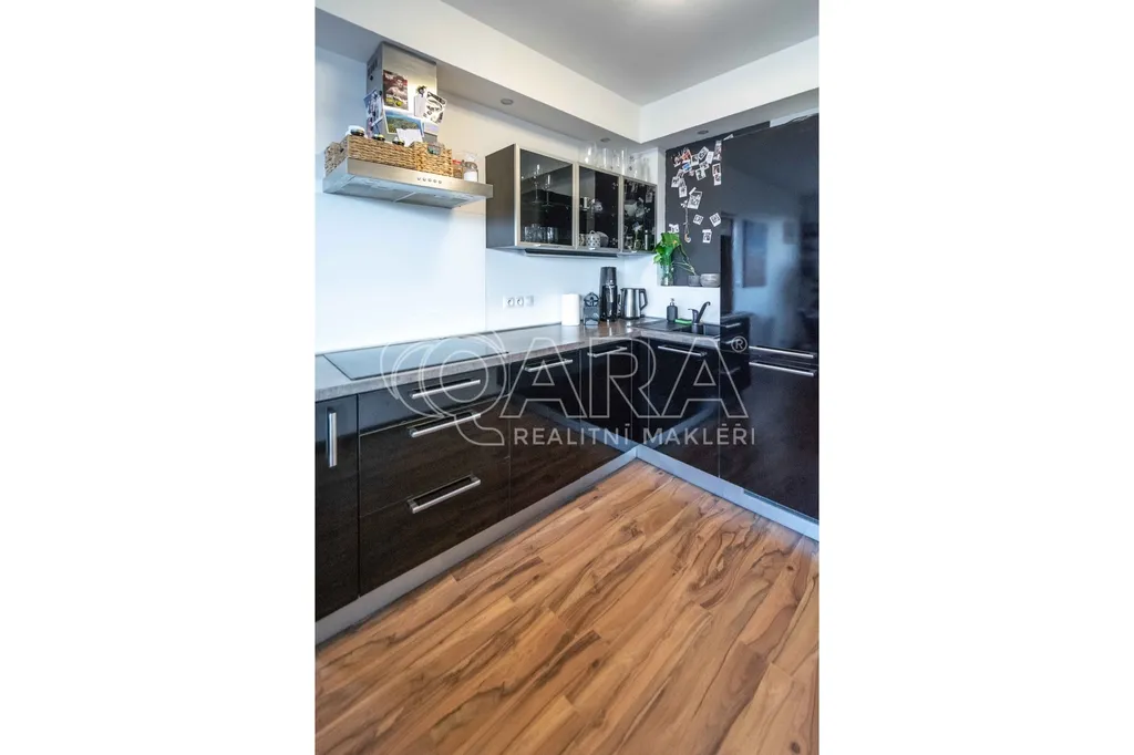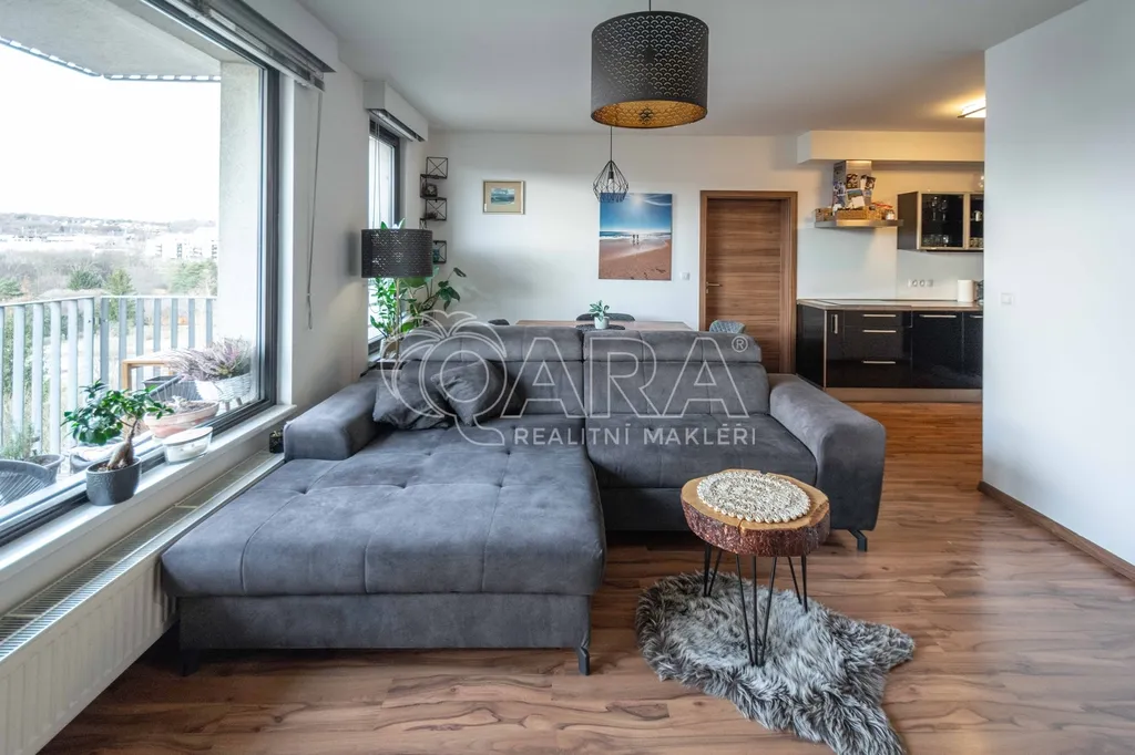 Celková plocha bytu 59,6 m2 + sklep + prostorný balkón o velikosti 5,7 m2, ze kterého můžete sledovat západ slunce nad Prahou. Kuchyňská linka včetně vestavěných spotřebičů: myčka, lednice s mrazákem, el. trouba, indukční deska a digestoř.