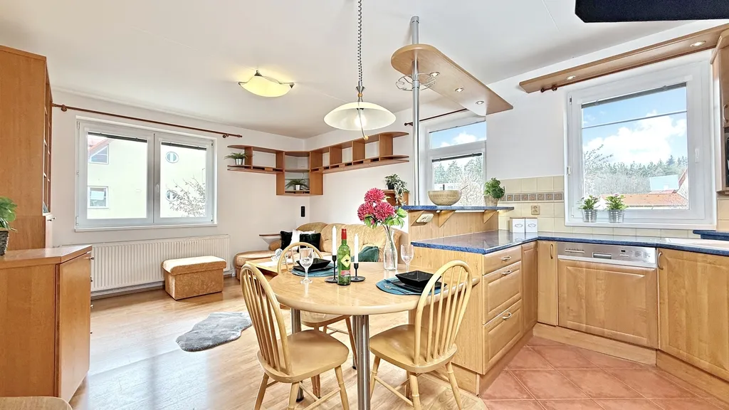 Dispozice 3+kk poskytuje ideální prostor pro rodinu i pár, kteří hledají komfortní bydlení s dostatkem denního světla po celý den. Vzdušný obývací prostor s kuchyňským koutem tvoří přirozené srdce bytu, další dva pokoje pak nabídnou flexibilitu pro ložnici, dětský pokoj či pracovnu.