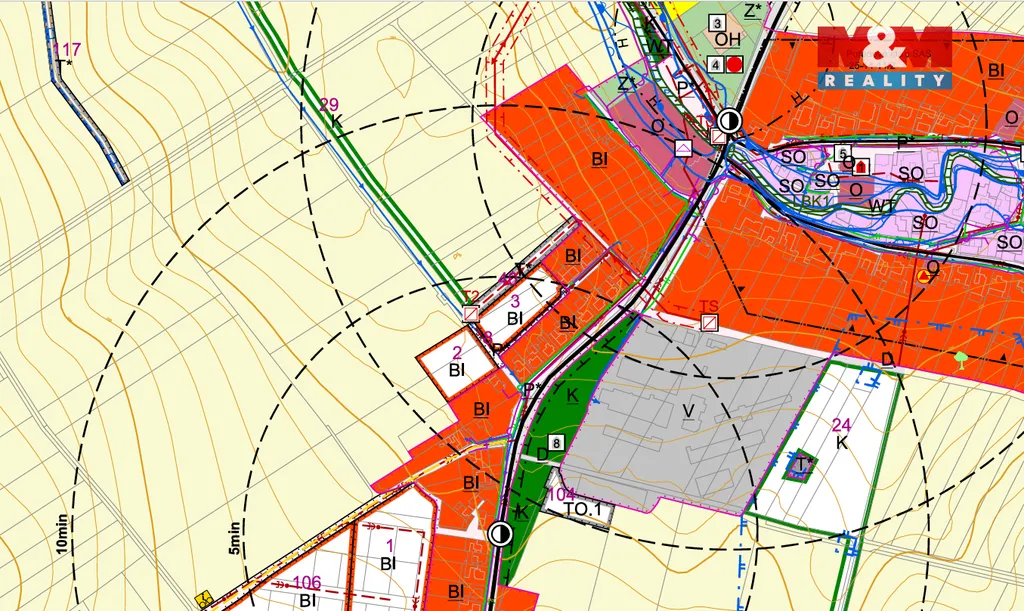 Pozemek je veden v územním plánu jako BI3 – bydlení individuální. Inženýrské sítě jsou přivedeny přibližně 70 metrů od parcely. Terén je rovinatý, stavba tak neklade zbytečné nároky na rozpočet ani přípravu.