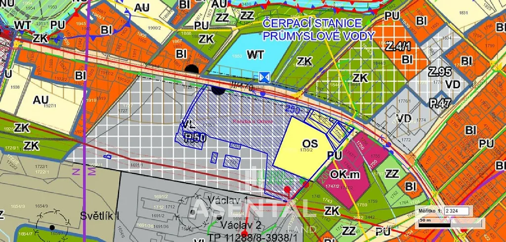 Dle platného územního plánu jsou pozemky určeny převážně pro výrobu a skladování – lehký průmysl, přičemž přibližně 2 115 m² je vymezeno pro sportovní využití.