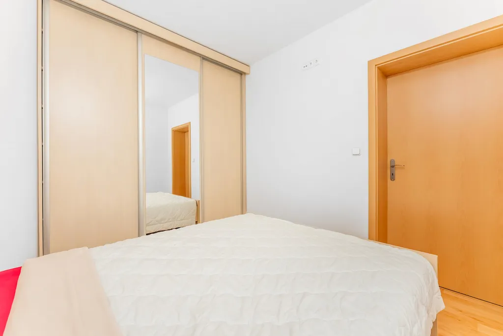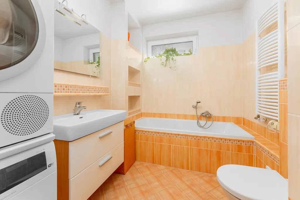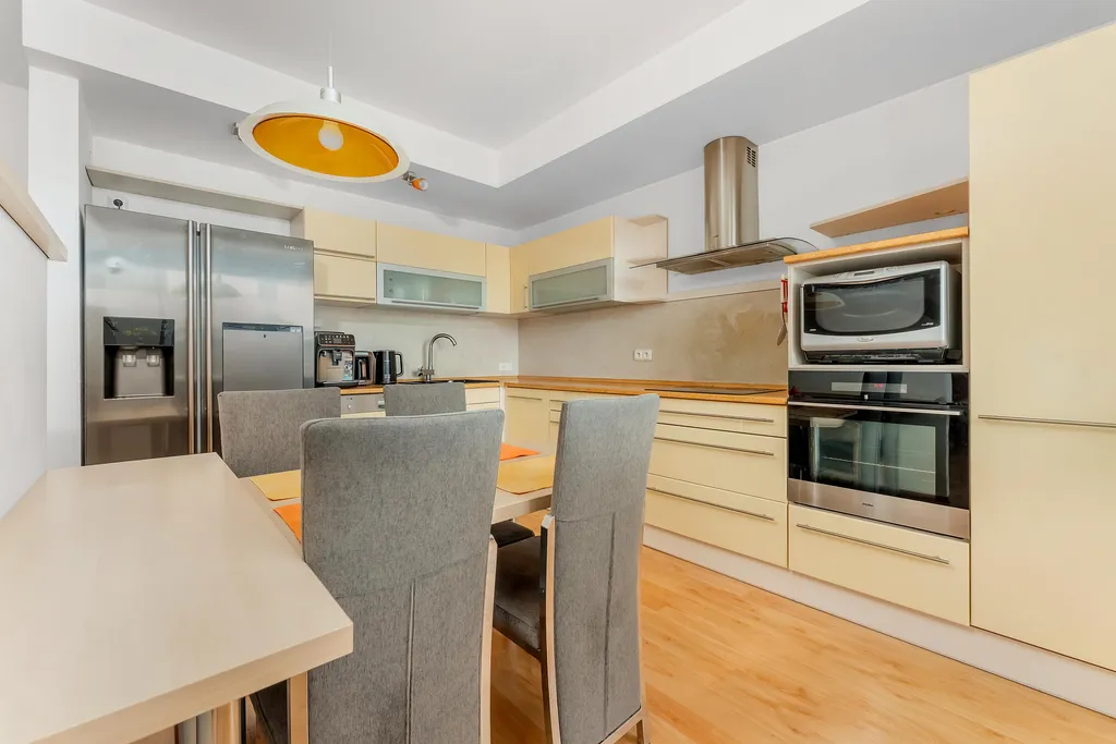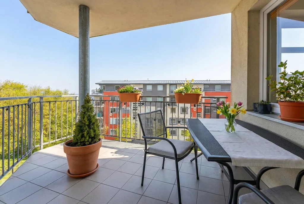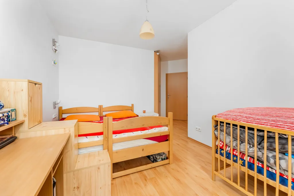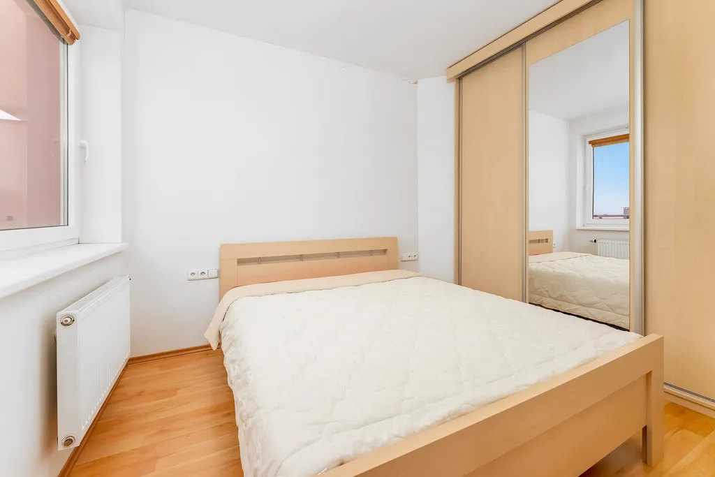 Dispozice dále nabízí dvě samostatné a neprůchozí ložnice poskytující naprosté soukromí, přičemž jedna z nich je vybavena vlastním samostatným balkonem. Velkou praktickou výhodou nadstandardní výměry je existence dvou toalet – jedné zcela samostatné a druhé umístěné v rámci prostorné koupelny. Ta potěší nejen vanou, ale také komfortním podlahovým vytápěním a otopným žebříkem. K bytu navíc náleží hned dva sklepy pro bezproblémové uložení sezónních věcí. Pohodlí podtrhuje také snadné parkování přímo u domu.