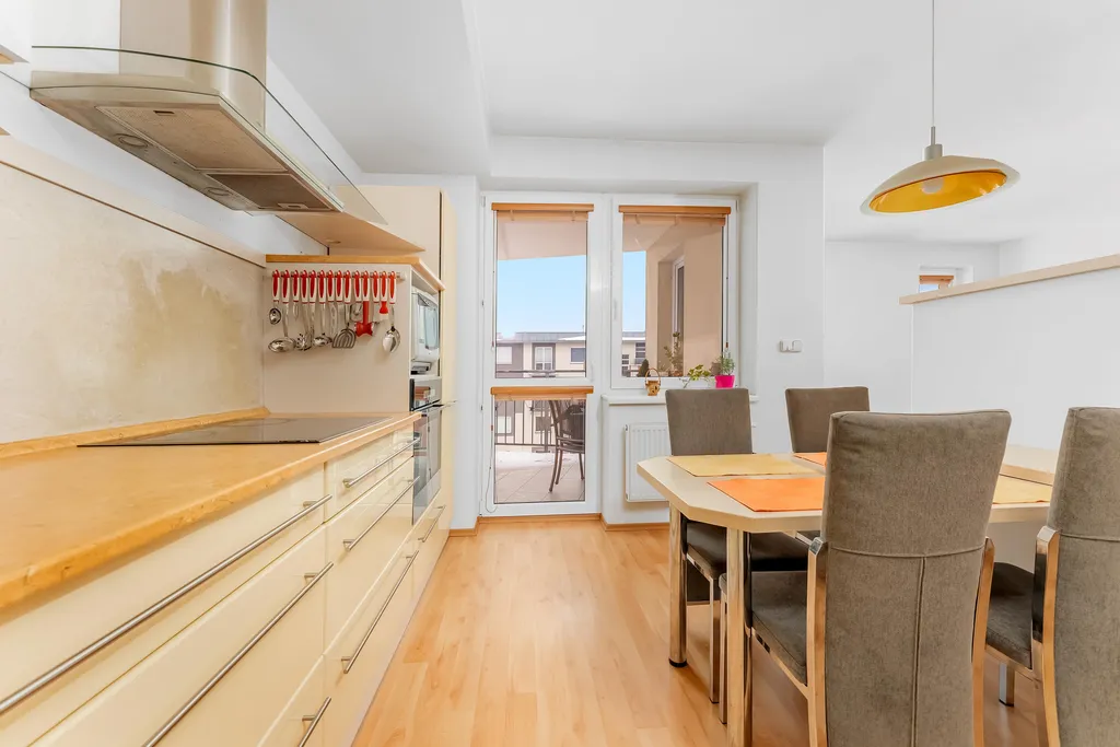 Bytová jednotka (plocha 94 m2) je situována v ideálním 3. nadzemním podlaží novějšího zděného domu z roku 2008. Budova je vybavena moderním výtahem, což zajišťuje maximálně pohodlný a bezbariérový přístup. Interiér je díky tomuto kroku navržen s maximálním důrazem na velkorysý otevřený prostor, vzdušnost a kvalitu bydlení s dostatkem přirozeného světla.
