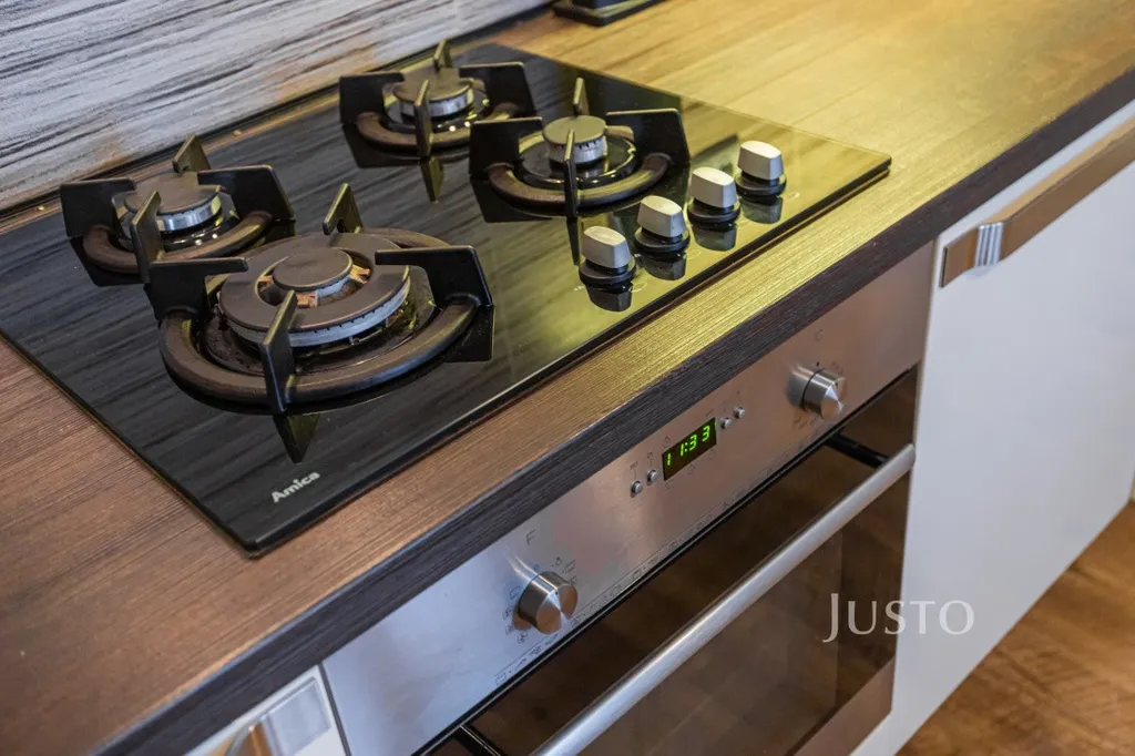 ● kuchyň s jídelním stolem a kuchyňskou linkou plně vybavenou spotřebiči (plynový sporák, trouba, lednice, mrazák, myčka),