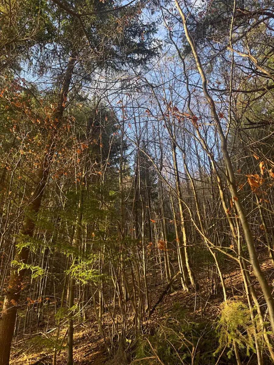 - p.č. 11367/22 vedená jako lesní pozemek o celkové výměře 6 642 m2 (stáří lesa 102 let - zastoupení dřevin smrk, buk, stáří lesa 44 let - zastoupení dřevin smrk, habr, stáří lesa 24 let - zastoupení dřevin smrk),