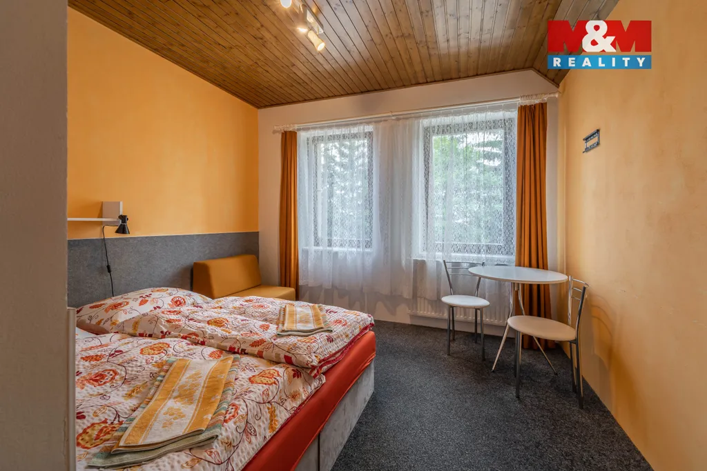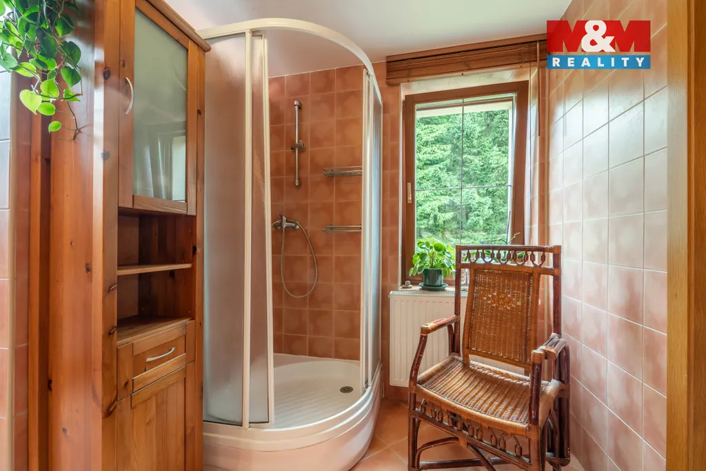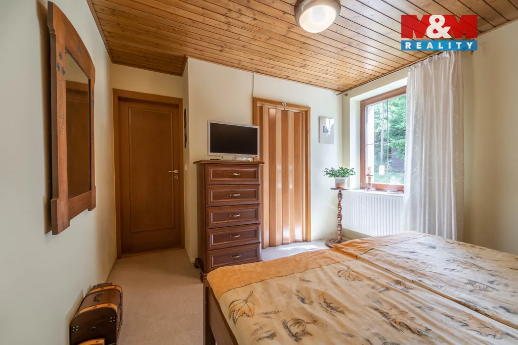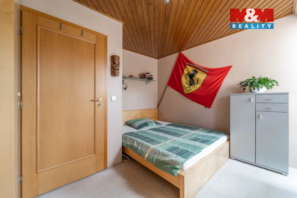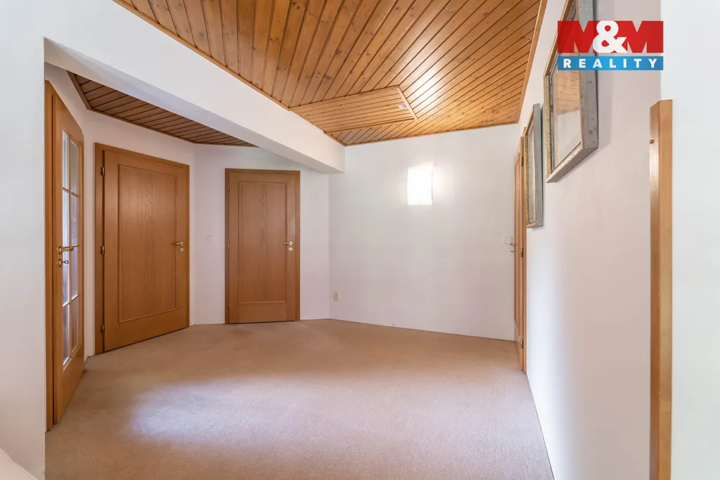 Solidní rodinný dům z r. 2005 o dispozici 4+1. Kromě bydlení nabídne i 2 zařízené apartmány na pronájem s odděleným vstupem, s vlastními sociálními zařízeními a kuchyní. Dům se rozkládá ve 2 NP a 1 PP s technickým zázemím - dílna, kolárna, sklad, garáž, kotelna s prádelnou, šatna. Srdcem domu je obývací pokoj s balkonem (28,1 m²) ve vysokém otevřeném prostoru, procházející přes 2 podlaží, který zaujme především velkými atypickými okny. Na obývací pokoj navazuje vkusně zařízená kuchyně s jídelnou se vstupem na terasu. Dále v obytné části najdeme pracovnu se žehlírnou, 2 ložnice, přičemž hlavní ložnice disponuje šatnou průchozí do prostorné koupelny s vanou a sprchovým koutem. Stavba je vybavena pokročilými technologiemi pro úsporu energií. Vytápění je zajištěno tepelným čerpadlem s možností dotápění kondenzačním plynovým kotlem, na střeše jsou osazeny FTV solární panely. V celém domě je rozveden centrální vysavač. Na zahradě se nachází bazén s vl. tepelným čerpadlem a pískovou filtrací.
