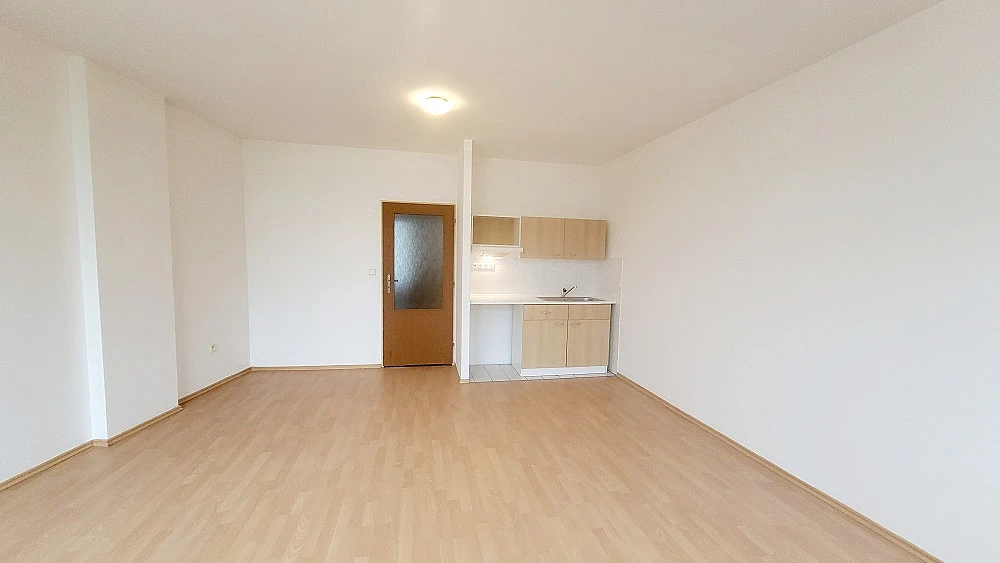 Dispozice: pokoj s kuchyňským koutem o ploše 26,30 m², prostorná předsíň 4,42 m², koupelna se sprchovým koutem společná s WC 4,10 m².