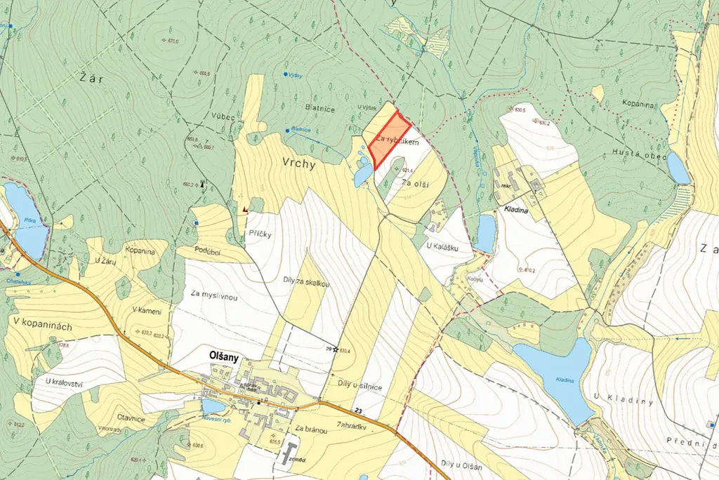 V katastrálním území Olšany u Telče nabízím k prodeji zemědělský pozemek ve výlučném vlastnictví.