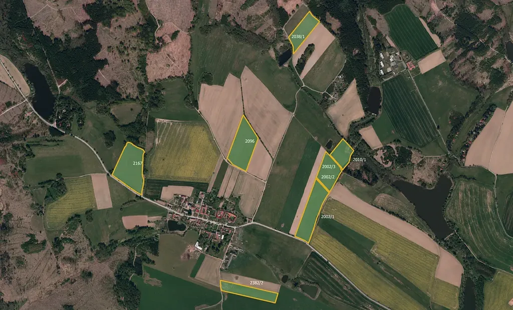 V katastrálním území Olšany u Telče, okres Jihlava, nabízím k prodeji soubor zemědělských pozemků ve výlučném vlastnictví. Pozemky jsou zapsány na listu vlastnictví č. 164 a tvoří je celkem dvanáct parcel.