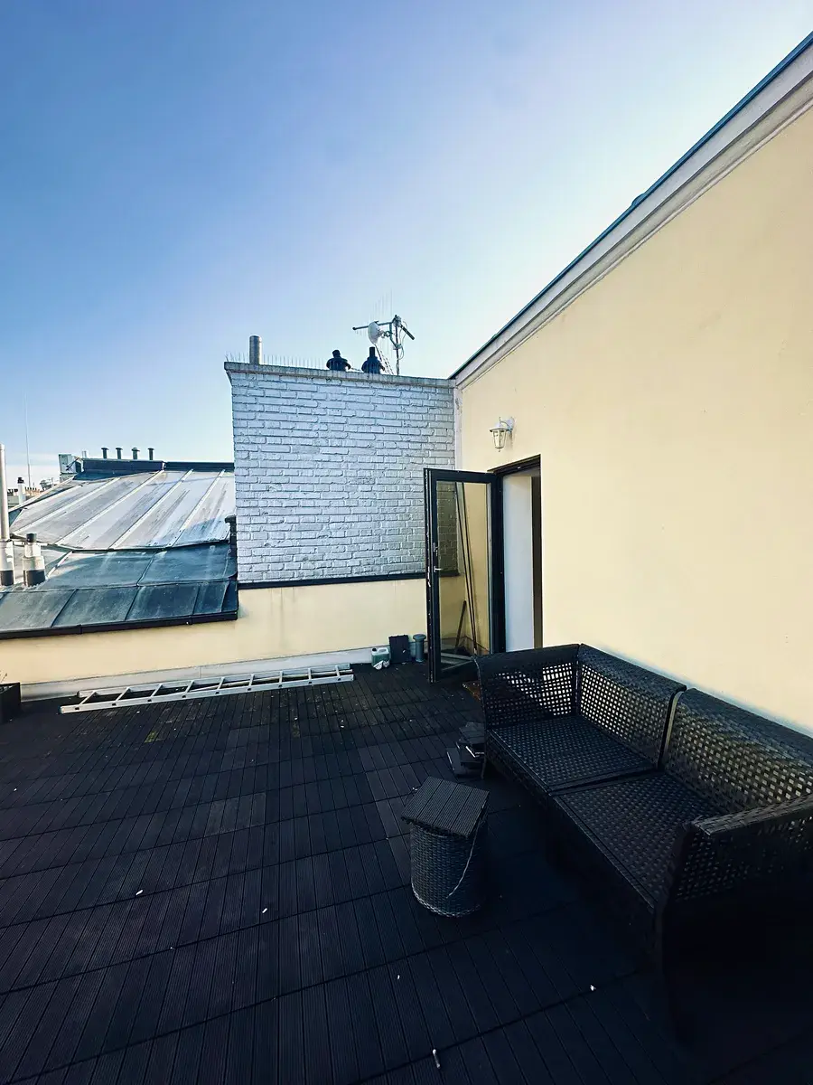 Součástí bytu je veliká střešní terasa s výhledem do klidné části Prahy a balkón. V bytě je mnoho zájímavých prvků, včetně vyhřívané podlahy a velikého kuchyňského ostrova.