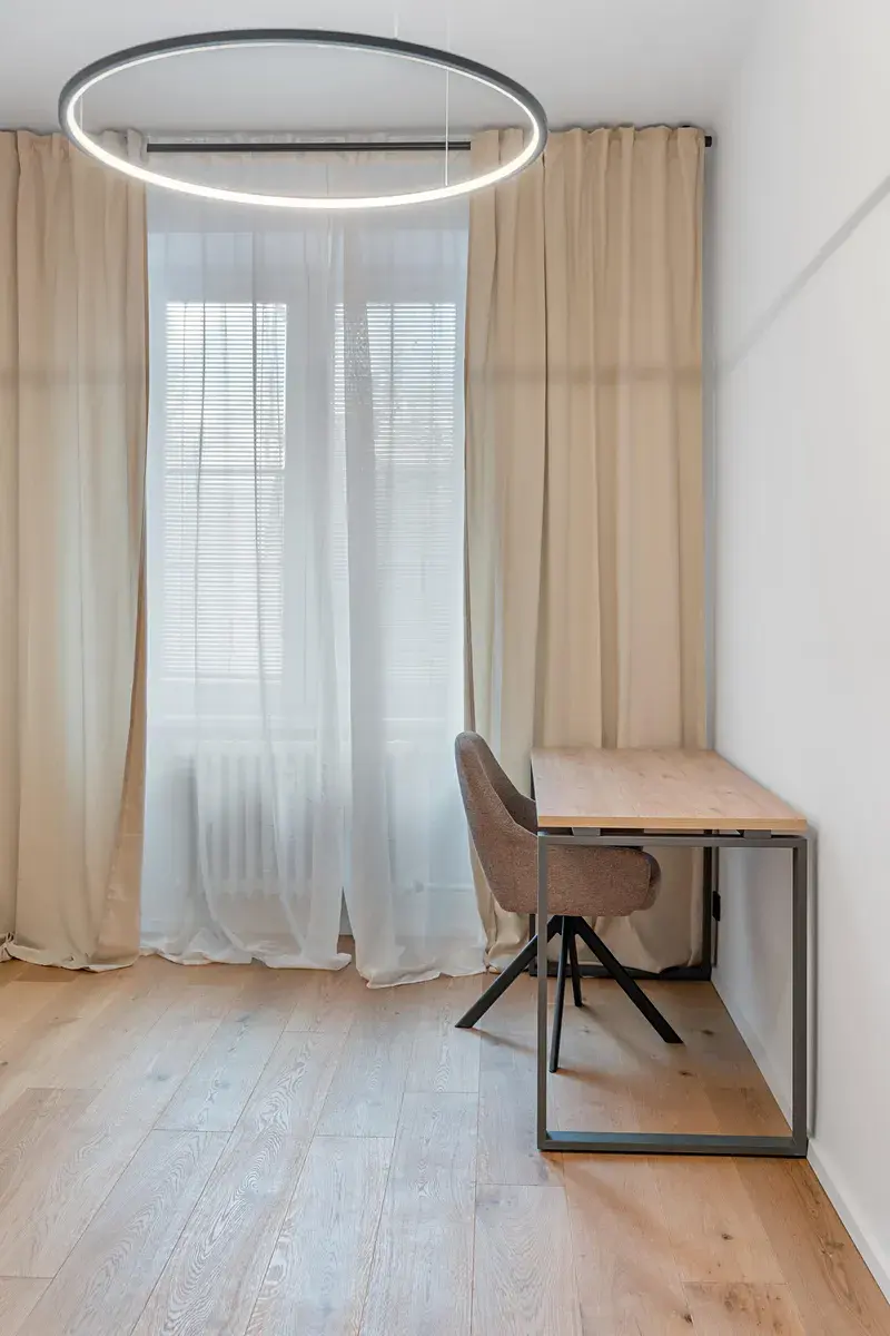 Byt je částečně zařízený, což poskytuje ideální kombinaci komfortu a prostoru pro vlastní dovybavení dle vašich představ. K maximálnímu pohodlí přispívají také elektrické předokenní rolety, které zajišťují soukromí i klid.