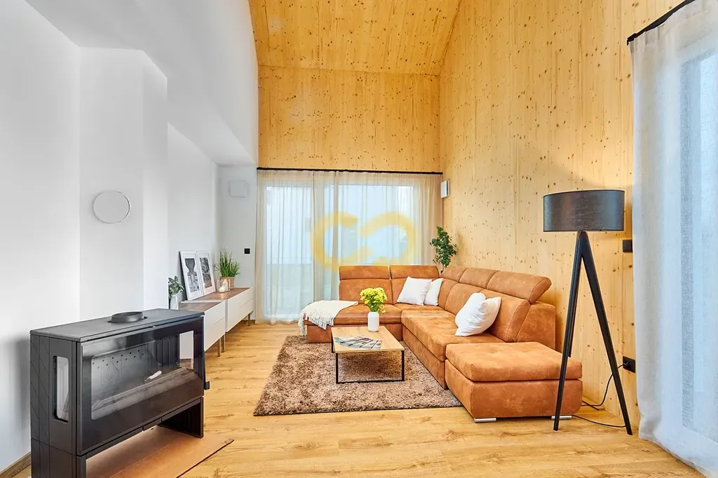 Novostavba je navržená s důrazem na pohodlí a nízké provozní náklady. Podlahové vytápění, tepelné čerpadlo a moderní stavební standard znamenají příjemné bydlení bez vysokých účtů za energie.