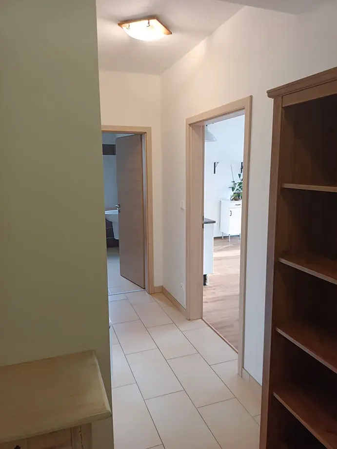 Nabízíme k pronájmu částečně vybavený byt s dispozicí 1+kk o podlahové ploše 45,57 m2 . Vybavení bytu: Kuchyňská linka, jídelní stůl, indukční deska, digestoř, myčka na nádobí,, lednice s mrazákem. Na podlahách dlažba a PVC. Koupelna s rohovou vanou a pračkou, toaleta samostatně. Byt se nachází ve 2.NP novostavby třípodlažního bytového domu s výtahem. Je světlý a slunný s balkónem orientovaným na jihozápadní stranu (6,15 m2 ), sklepní kójí (1,52 m2 ) a parkovacím stáním ve společných garážích domu. Byt je možno pronajmout bez garážového stání. Výhodou tohoto bytového domu kromě malého počtu bytů v objektu a klidného prostředí je hlavně tepelné čerpadlo, které zajišťuje úsporné vytápění a ohřev vody pro obyvatele domu. Kauce ve výši jednoho nájmu, odměna RK též ve výši jednoho nájmu. Možnost nastěhování od 1.4.2026. Jedná se o lokalitu s dobrou dostupností a občanskou vybaveností vázanou na městské části Řepy a Zličín.