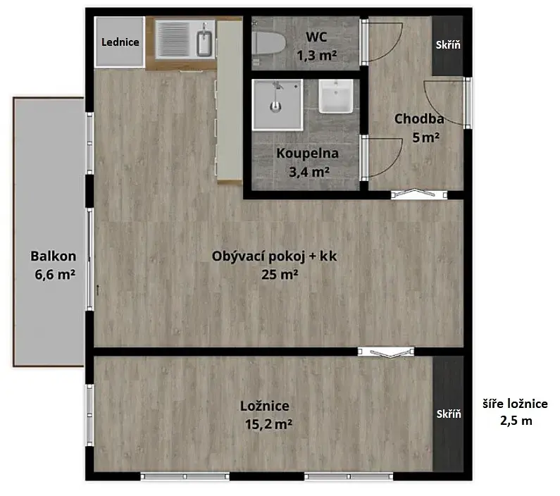 •zastřešený balkon přístupný z obývacího pokoje