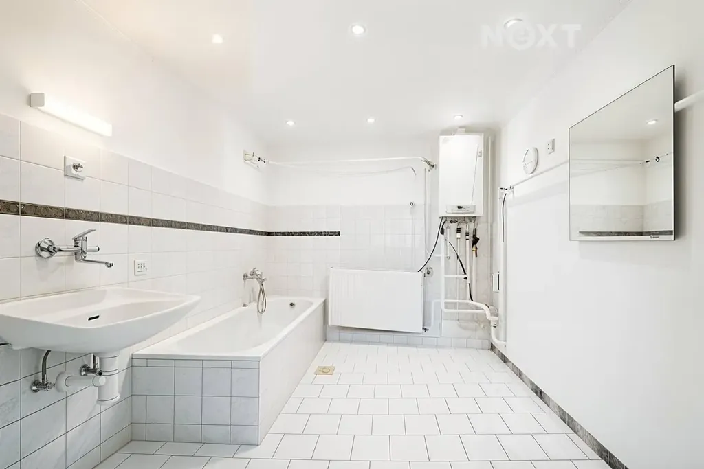 V domě je instalován plynový kombi kotel umístěný v koupelně, který je plně funkční a zajišťuje jak vytápění, tak přípravu teplé užitkové vody.