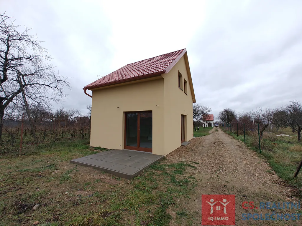 V zastoupení majitele nabízíme k prodeji 3+kk dům v klidné části města Znojma u Nové nemocnice. Jedná se o novostavbu umístěnou v zahradě o výměře 690m2, s velmi dobrou dostupností zastávka MHD u Nové nemocnice 450m, Penny 950m, do centra města Znojma pěšky 1,8km. V přízemí je obývací pokoj s kuchyní, koupelna s wc, v patře dva prostorné pokoje a samostatné wc. Vytápění v domě je elektrické podlahové, a pomocí tepelného čerpadla vzduch - vzduch, které v zimě topí a v letě chladí. Díky tomuto vytápění a kvalitnímu zateplení a použití oken s izolačními trojskly má dům PENB - B, tedy náklady na provoz domu minimální. Na pozemku je možné postavit vedlejší stavbu až 25 m2 a následně tím rozšířit dům na 4+kk.