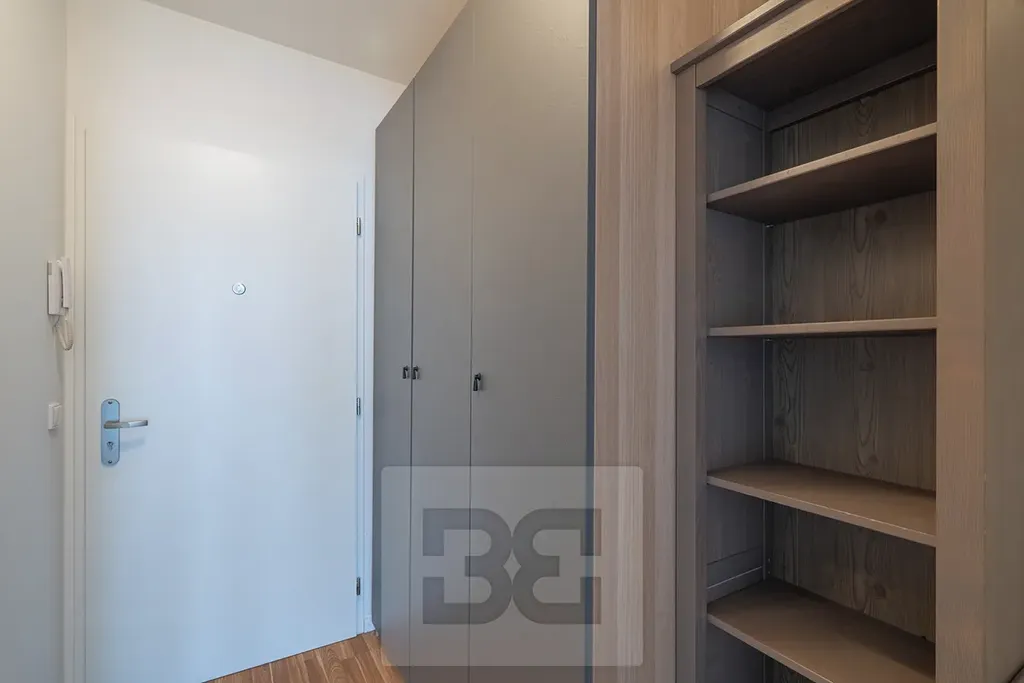 Byt se nabízí nevybavený. K dispozici je moderní kuchyňská linka se spotřebiči včetně varné desky, trouby a menší lednice. V předsíni se nachází velká vestavěná šatní skříň.