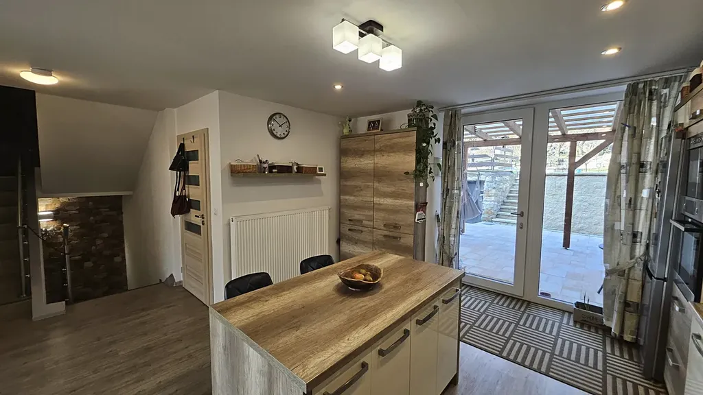 Nabízíme k prodeji řadový rodinný dům ve městě Jaroměř. v roce 2019 byla dokončena kompletní rekonstrukce, která zahrnovala nové rozvody vody, topení včetně tepelného čerpadla a elektřiny, nové stropy, renovaci podlah, výměnu oken a dveří včetně nových garážových vrat. Dům má zateplený strop v 1. NP, nově zateplenou střechu s moderním povrchem a nový komín ke krbu. Součástí rekonstrukce bylo i zateplení obvodového pláště, což přispívá k energetické úspornosti domu.